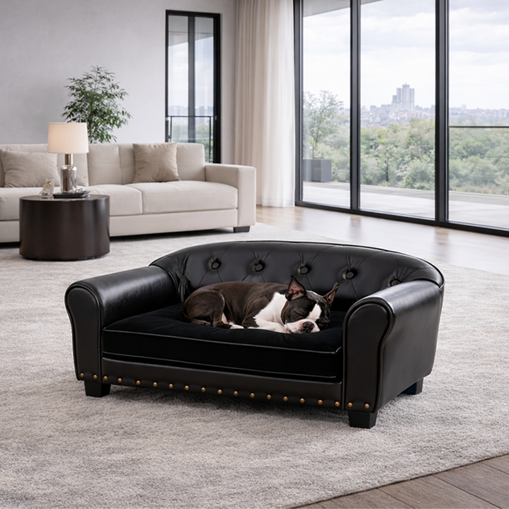 PU Leather Dog Sofa — 28.7" Upholstered Furniture-Grade Bed for Small Dogs