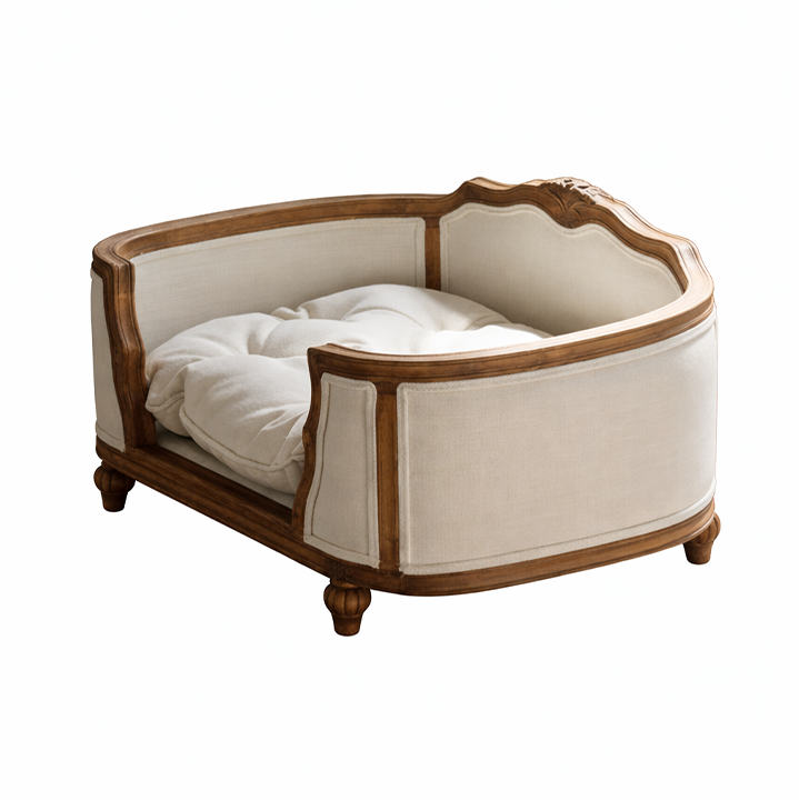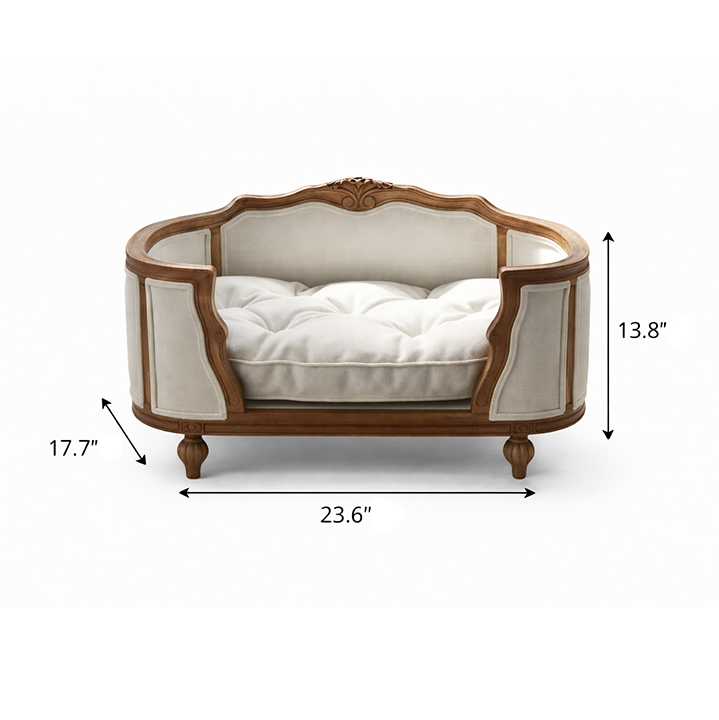 Solid Oak Dog Bed — 23.6" Linen Upholstered Bed for Small DogsSolid Oak Dog Bed with Natural Linen