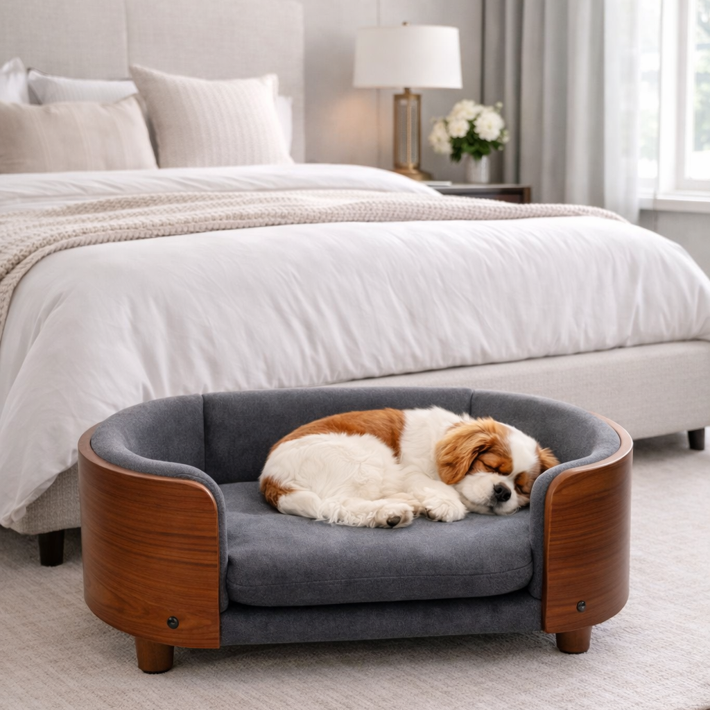 Elevated Oak Dog Bed — 26.4" Orthopedic Memory Foam Bed for Small Dogs