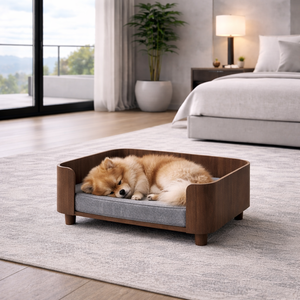 Small Wooden Dog Bed — 19.3" Elevated Minimalist Bed for Small DogsSmall Wooden Dog Bed